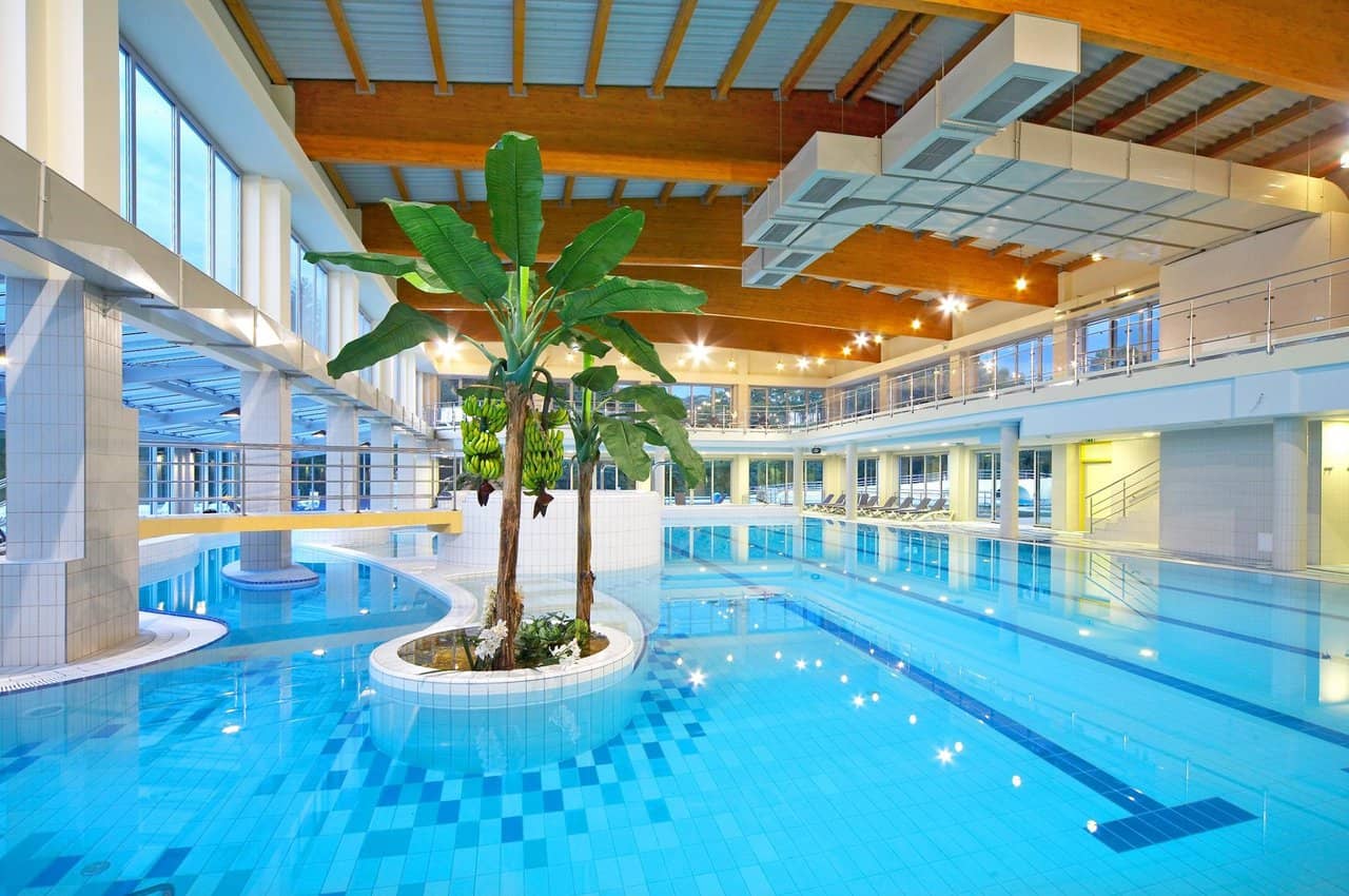 In a beautiful, gently rolling, and purely rural landscape, you can enjoy swimming in both indoor and outdoor pools. In total, you will find over 5,000 m² of water surface here. There are thermal and medicinal pools, recreational and relaxation pools, as well as sports, entertainment, and children’s pools.