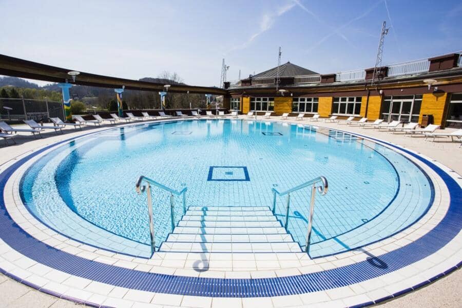 The outdoor swimming area offers a structured and modern environment, and there is also a large waterslide system for wild water fun. Inside, there is a large swimming pool (25 m) or, for example, the TuhiLand children’s zone with an entertainment water castle and much more.